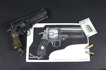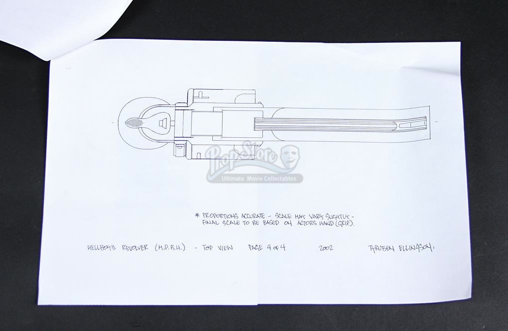 Lot #120HELLBOY (2004) - Hellboy's (Ron Perlman) Good Samaritan Pistol, Bullets & Design Prints